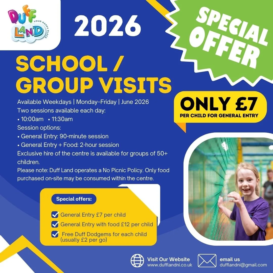 We're excited to welcome schools and groups to Duff Land for our 2026 School & Group Visits, available throughout June 2026 with a fantastic special offer.